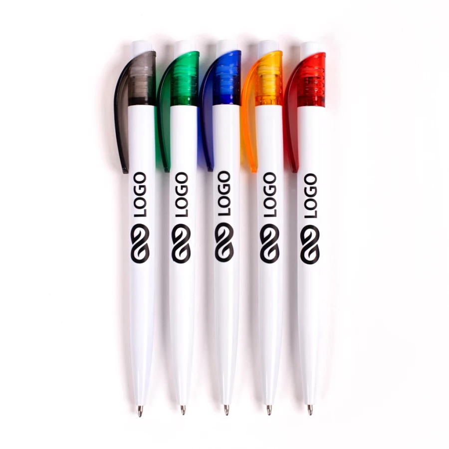 Pixul din plastic Easy este un gadget promoțional simplu, dar plăcut din punct de vedere estetic și atrăgător. Este fabricat din plastic alb și prezintă un element decorativ transparent în partea de sus, care se transformă într-o clemă rotunjită, bine prinsă. Pixul din plastic Easy are un mecanism standard cu buton și o rezervă de cerneală albastră. Este posibil să imprimați logo-ul și numele companiei pe țeavă fie prin tampografie, fie prin imprimare laser. Produsul este ușor, confortabil în mână, dar robust și durabil. Pixurile din plastic Easy imprimate pot face parte din echipamentul standard al companiei dumneavoastră sau pot deveni un mic cadou pentru clientul dumneavoastră.
