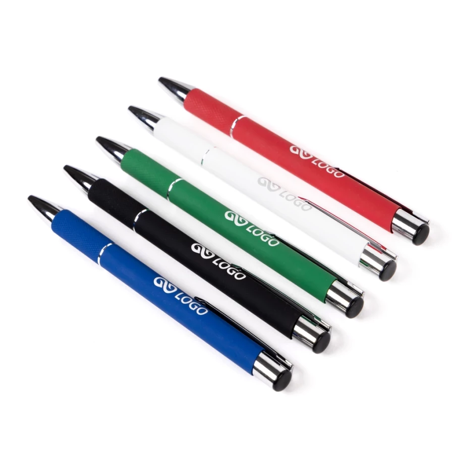 Stiloul Zoe este un gadget promoțional practic pe care îl puteți înmâna clienților dvs. la evenimentele companiei, târguri, conferințe și întâlniri de afaceri. Reîncărcătura stiloului se deblochează prin apăsarea butonului din partea de sus. Culoarea reșapului este albastră, dar este posibil să cumpărați un reșap negru - caz în care va trebui să înlocuiți singur stocul. Puteți grava cu laser pe stilou - pe partea dreaptă sau stângă - cu o dimensiune maximă de 55 mm x 6 mm. Este posibil să comandați stilouri în mai multe culori. Pentru o prindere confortabilă, produsul este acoperit cu plastic cauciucat.