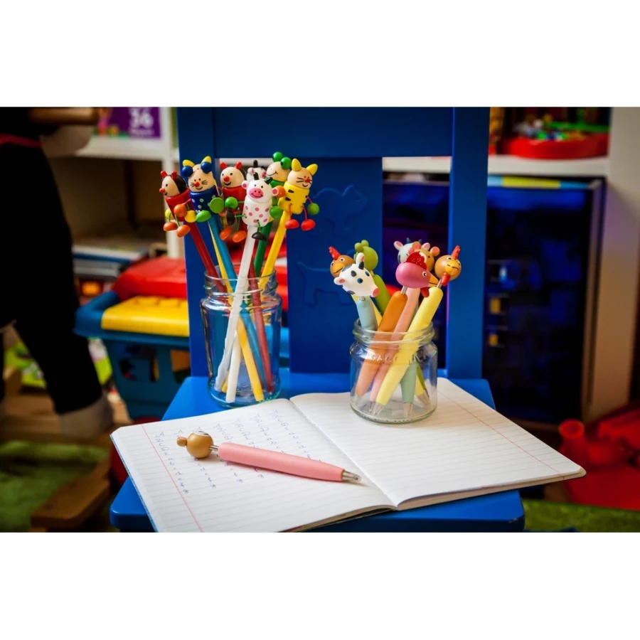 Pixul Lillian "Animale" este un gadget promoțional drăguț și funcțional, care combină estetica și caracterul practic. Fabricat din lemn și metal, acest stilou iese în evidență prin figurile colorate de animale de pe partea superioară, care atrag atenția și evocă emoții pozitive. Cu capacitatea sa de tampografie de 55×7 mm, acesta este instrumentul perfect pentru promovarea mărcii. Ideal pentru evenimente, târguri sau ca cadou pentru clienți, în special în industriile legate de copii, educație sau creativitate.